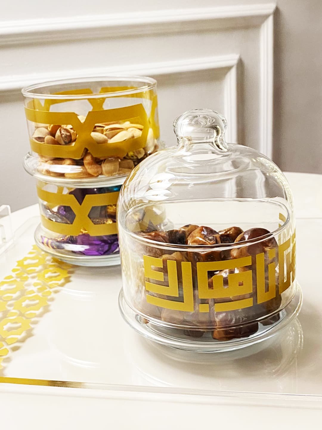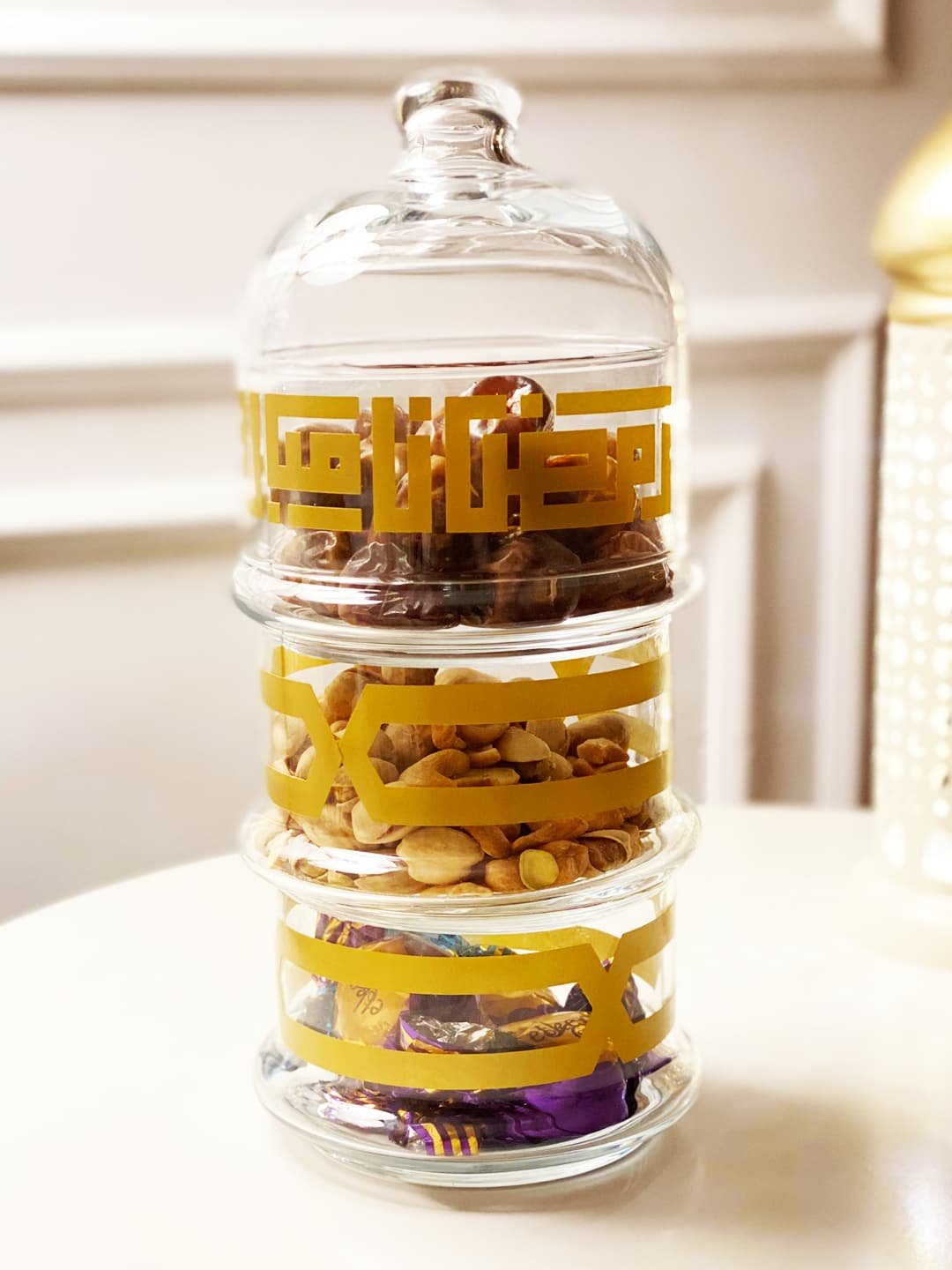 3-tier glass serving bowls with dome lid