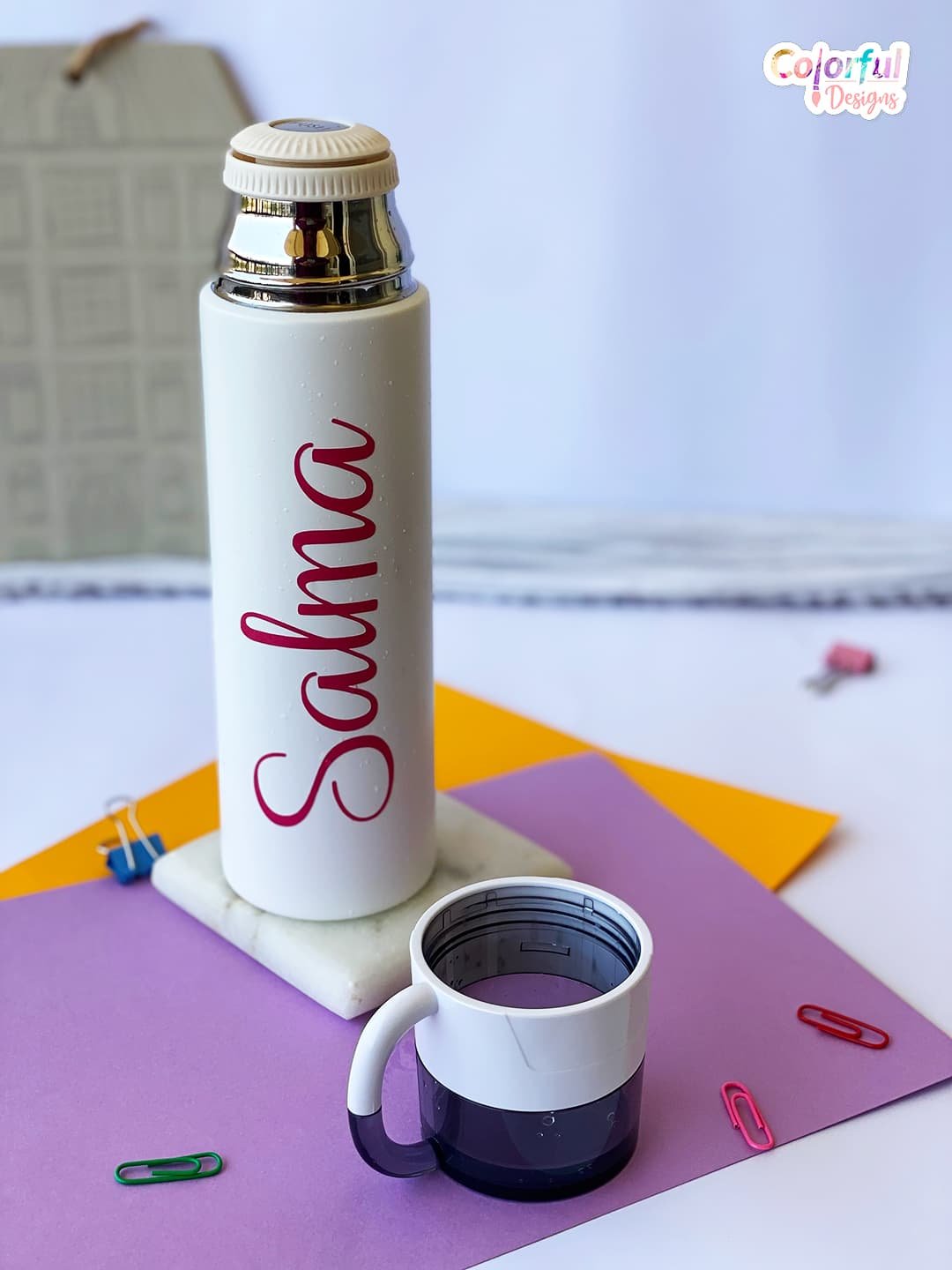 Stainless steel thermal water flask 500ml (with kid’s name).
